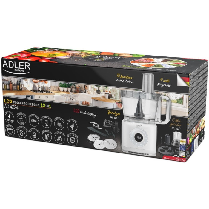 Если вы ищете кухонное оборудование, которое поможет вам быстро и эффективно приготовить блюда на кухне, не ищите дальше! Кухонный комбайн AD 4224 мощностью 1000 Вт — это устройство, которое навсегда изменит ваш стиль приготовления пищи. Многофункциональный, стильный и изготовленный из высококачественных материалов, он станет важным дополнением к вашему кухонному оборудованию. Вы можете приготовить любимые торты, соусы и кремы, коктейли и многие другие блюда. Устройство, под которым скрывается несколько различных функций, помогает качественно и быстро приготовить даже очень изысканные блюда. Комбайн оснащен ЖК-дисплеем, который находится на видном месте и позволяет контролировать работу робота. Есть семь скоростей для ручного выбора, так что вы можете с легкостью нарезать или смешать более или менее деликатные ингредиенты. Кроме того, вы можете использовать четыре автоматические программы, благодаря которым вы можете приготовить коктейль-смузи, нарезать мясо, растолочь лед или измельчить нежные овощи или фрукты в соус с импульсным режимом.