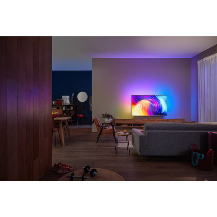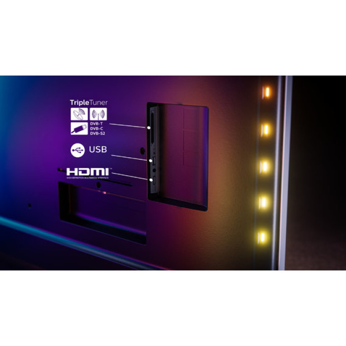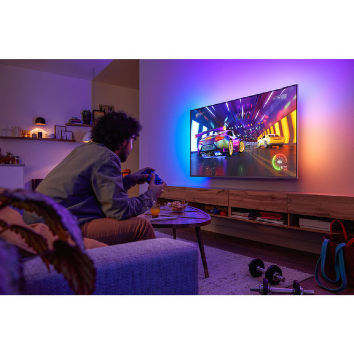 Завдяки Philips Ambilight враження від перегляду телевізора Philips стають ще яскравішими! Світлодіодне підсвічування по краях екрана змінює колір і яскравість в залежності від зображення на екрані або музики, що звучить. Підсвічування створює атмосферу занурення, яка точно не залишить вас байдужими.
