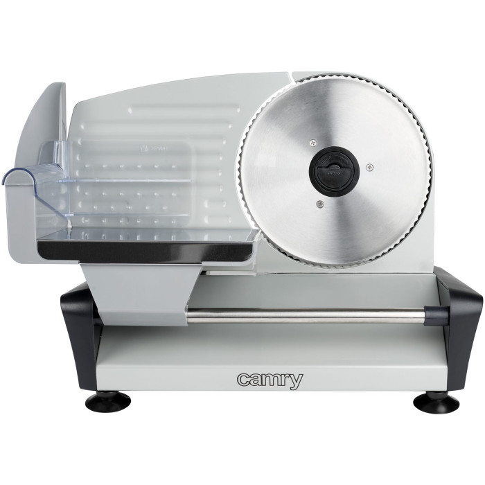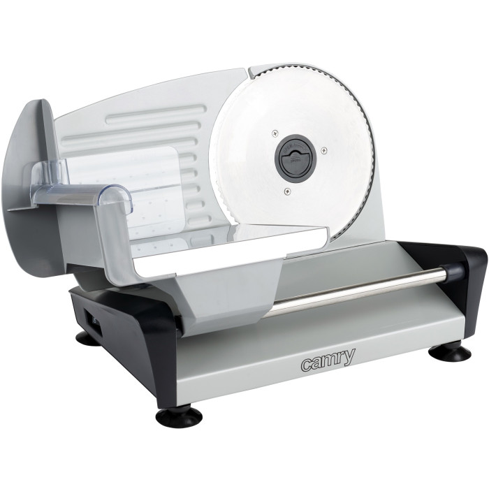 Удобный и безопасный слайсер с удобным раскладным столиком и съемным толкателем. Лезвие из высококачественной нержавеющей стали позволяет вырезать мясо на тонкие ломтики, а также вырезать сплошной кусочек хлеба. Толщина реза может быть свободно отрегулирована, что облегчается четкой индикацией текущей настройки.