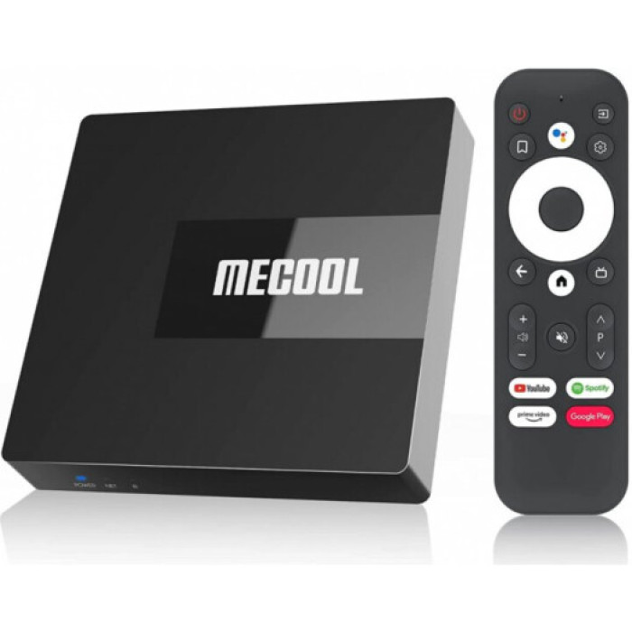 DVD/HD-медіаплеєр MECOOL KM7 2/16Gb із процесором SoC Amlogic S905Y4, який підтримує кодек AV1. Функціонує на ОС Android TV 11.