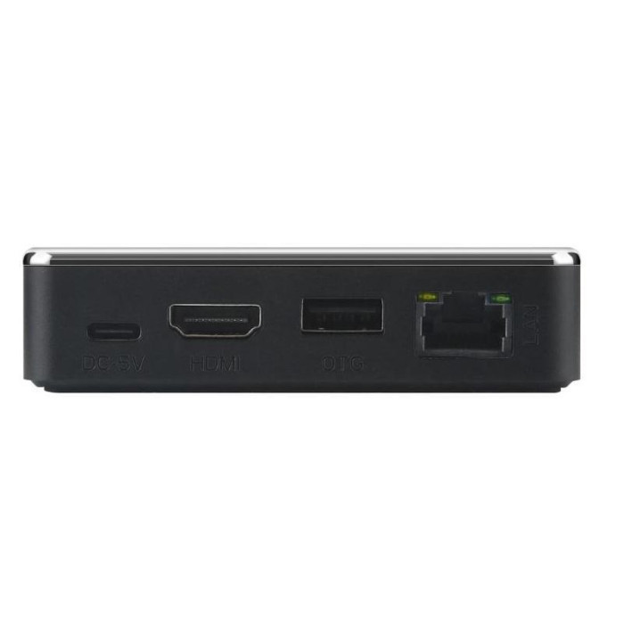 Смарт-бокс выполнен в оригинальном квадратном корпусе черного цвета с удобно размещенными на боковых гранях разъемами. Среди них: