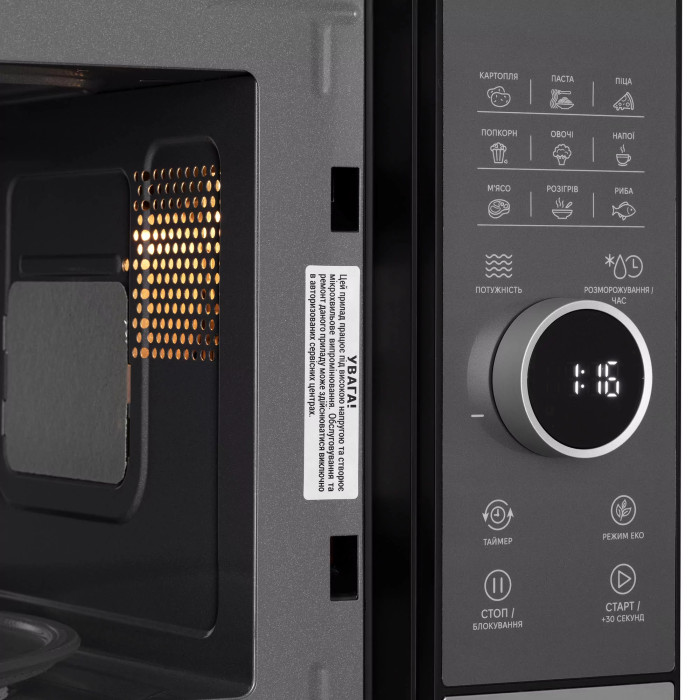 Настройка часов, таймер, разогрев, быстрая разморозка (по времени), авторазмораживание (по весу), экспресс приготовление/быстрый старт, режим Эко, блокировка от детей