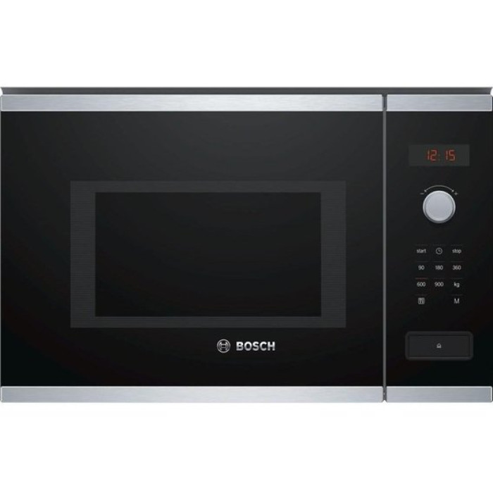 Якщо ви задумалися про вибір вбудованої мікрохвильової печі з відмінним функціоналом, то варто звернути свою увагу на таку модель, як Bosch BFL553MS0. Якісно виконана мікрохвильовка, завдяки стильному дизайну, впишеться в будь-який інтер'єр кухні. Крім того, ця модель має корисний об'єм камери на 25 л. Варто зазначити, що внутрішнє покриття з неіржавкої сталі витримує НВЧ-випромінювання, потужністю 900 Вт, що разом із поворотним столиком забезпечує якісне рівномірне та безпечне розморожування й підігрівання продуктів. І до того ж легко очищається від забруднень за допомогою м'якої губки. Порадує і наявність 5 рівнів потужності, що дає змогу за потреби задати оптимальний рівень залежно від того, що ви хочете зробити з продуктами - підігріти або розморозити. Просте і зрозуміле електронне управління дасть змогу вибрати потрібну потужність, час або скористатися будь-якою з семи автоматичних програм приготування. Для зручного відкриття Bosch BFL553MS0 передбачена зручна кнопка.