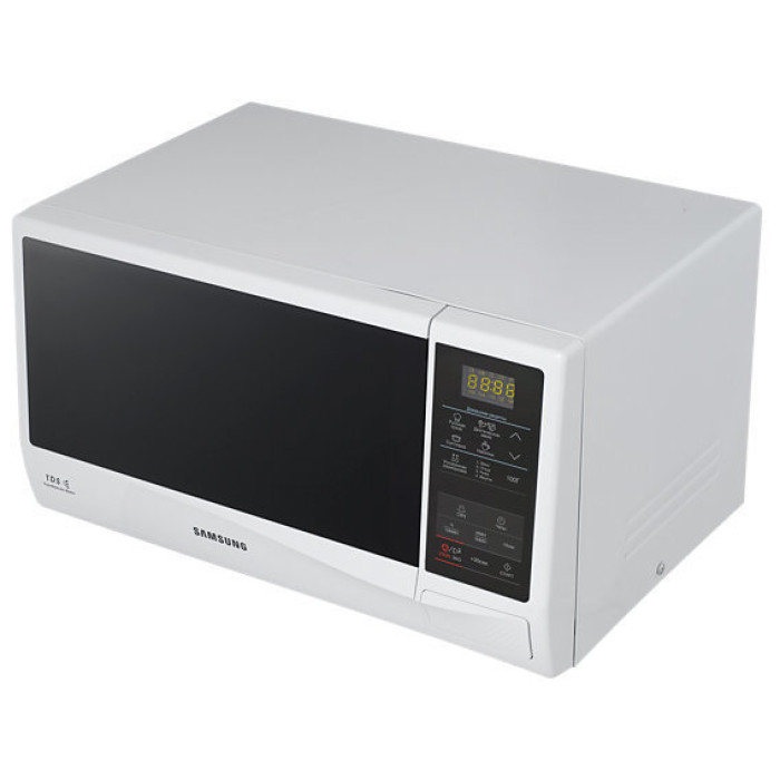 Компактна, проте містка мікрохвильова піч Samsung ME83KRW-2/BW призначена для дому. Одна з її переваг у тому, що її обсяг значно більший за подібні до неї моделі, при цьому висота і ширина не збільшуються. Глибина стала більшою на 12 сантиметрів, це додало 3 літри додаткового місця, тому і кількість продуктів, а також їхній діаметр значно більше. Корисна площа дозволяє працювати зі стравами до 388 міліметрів у діаметрі.