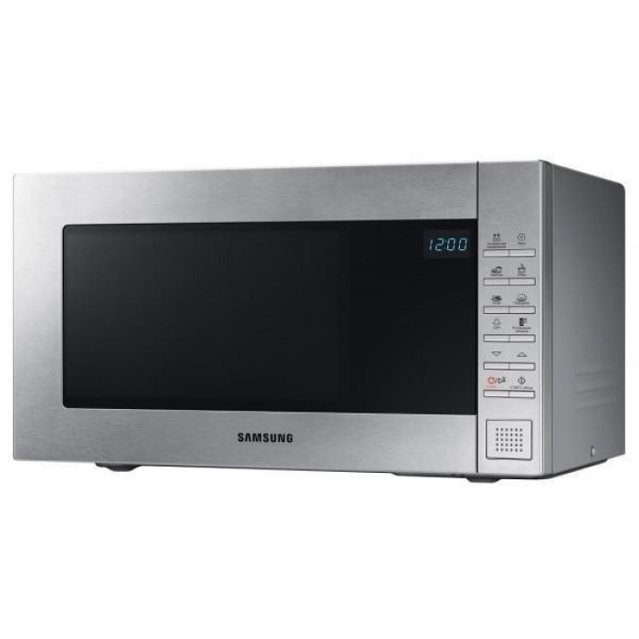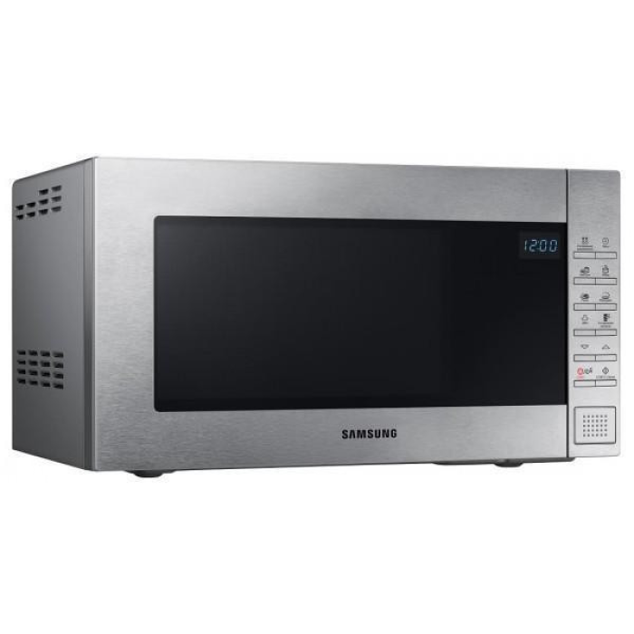 Мікрохвильовка Samsung ME88SUT - це окремостояча модель корисним об'ємом 23 літри кольору нержавіючої сталі з обертовим столиком діаметром 288 мм. Її відмітною особливістю можна назвати керамічну емаль як внутрішнє покриття. Вона не дряпається, не тріскається, легко миється, усуває неприємні запахи і знищує бактерії. Максимальна потужність НВЧ-випромінювання становить 800 Вт і регулюється 6 рівнями, при цьому мікрохвилі поширюються трьома джерелами, забезпечуючи рівномірність нагріву їжі. Для приготування страв можна скористатися функцією автоматичного приготування, а швидко і рівномірно розморозити продукти допоможе система автоматичного розморожування. Електронний таймер задає час приготування або розігрівання їжі. Налаштування мікрохвильової печі Samsung ME88SUT задаються тактовим керуванням і відображаються на блакитному LED дисплеї.