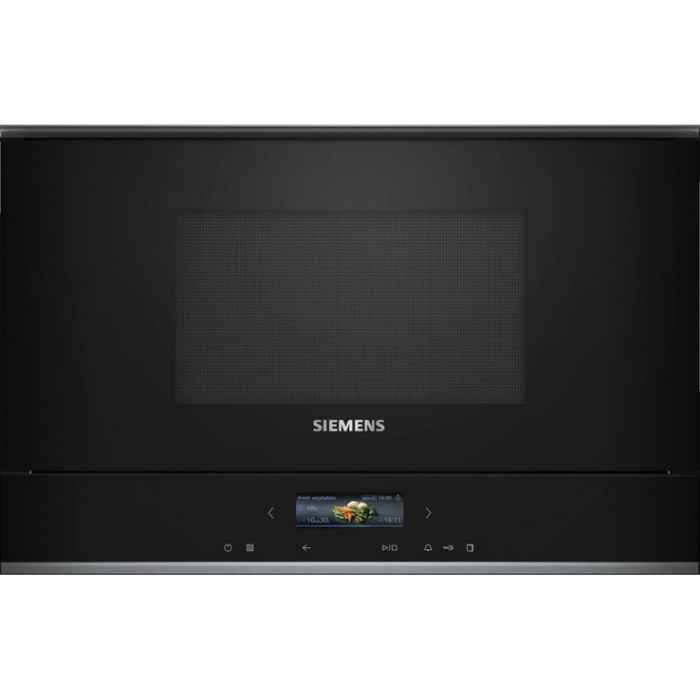 SIEMENS BF722L1B1 идеально подходит для перерыва между двумя приготовлениями: с помощью humidClean Plus очистка микроволновой печи больше не является рутинной задачей. Добавьте каплю средства для мытья посуды в небольшую чашку воды. Активируйте программу очистки humidClean Plus и позвольте волшебству гидролиза работать. По завершении программы просто удалите размягченные остатки тканью или мягкой щеткой.
