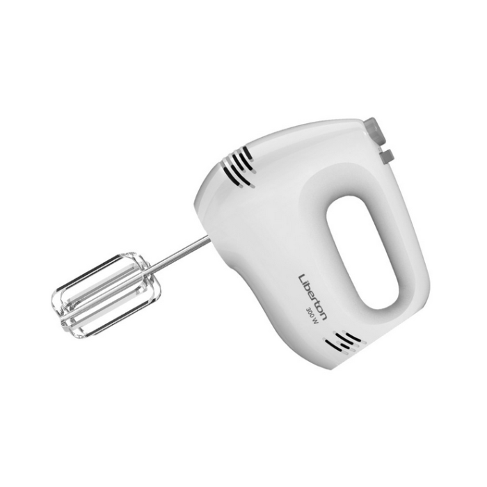 Потужність: 300 Вт; Кількість швидкостей: 5; Режим "Турбо": ні; Насадки: віночки, гачки для тіста; Матеріал насадок: сталь; Кнопка вилучення насадок: так; Матеріал корпусу: пластик; Довжина шнура: 0,9 м; Розмір виробу: 16,6 х6, 4х14 см; Колір білий.