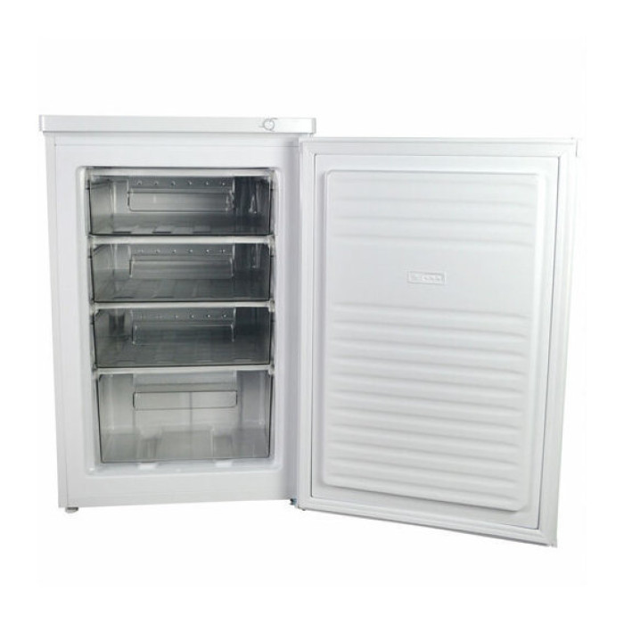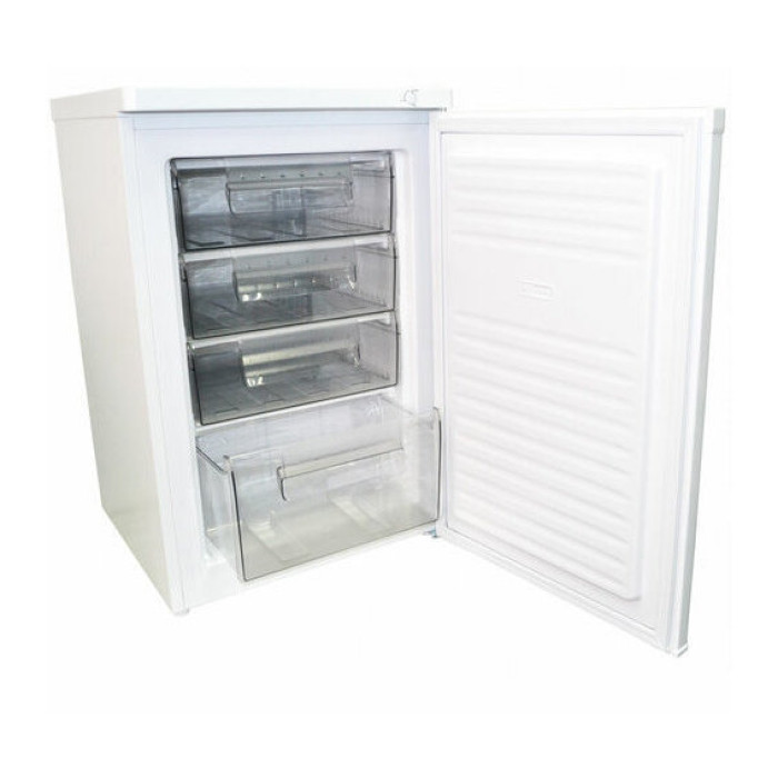 Морозильная камера Grunhelm GHUF-85 выпускается в белом цвете и относится к классу энергопотребления А+. Она оборудована надёжным поршневым компрессором, который работает с низким уровнем шума – до 41 дБ. Полезный объём устройства составляет 85 литров, а его производительность – до 4 кг замороженных продуктов за сутки. В случае аварийного отключения электроэнергии прибор сохраняет холод на протяжении 17 часов. Чтобы рационально размещать пищу, модель содержит четыре прозрачных выдвижных контейнера. Она плотно закрывается дверцей с горизонтальной интегрированной ручкой. Управляется морозильная камера Grunhelm GHUF-85 механическим поворотным регулятором, который расположен снаружи. Её размораживание производится обычным ручным способом.