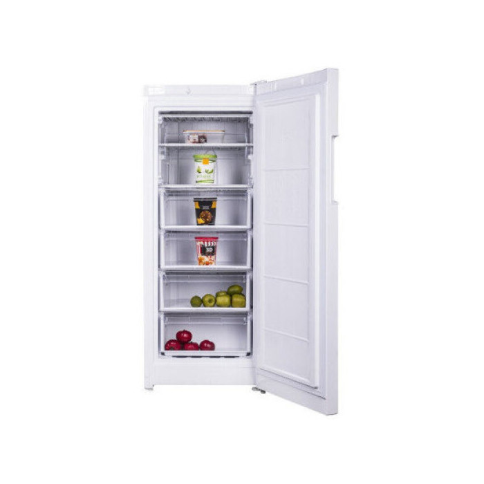 Внутреннее пространство морозильной камеры адаптировано под удобное размещение продуктов. Общий полезный объем составляет 214 л и делится на 6 отделений в виде ящиков, которые выкатываются по направляющим. Они имеют прозрачные стенки, за счет чего внутри хорошо видно содержимое каждого отделения.