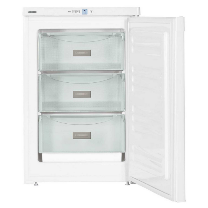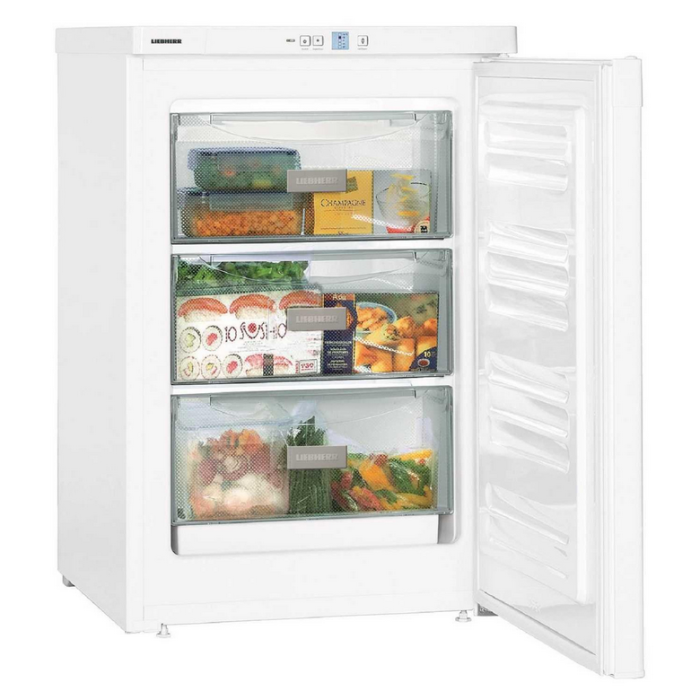 Незважаючи на свої невеликі розміри, морозильна камера Liebherr G 1213 має цілу низку переваг. Зрозуміле електронне кнопкове керування MagicEye з РК-дисплеєм та графічною індикацією температури. Незамінна функція SuperFrost з автоматичним регулюванням часу роботи, яка допоможе швидко заморозити продукти. У разі несправності Liebherr G 1213 попередить вас оптичним сигналом, а можливість блокування кнопок унеможливить випадкову зміну налаштувань. Продуманий дизайн SwingDesign та виконання Liebherr G 1213 з фронтальною вентиляцією дозволить без проблем знайти зручне місце для його встановлення (морозильник можна ставити впритул до стінки).