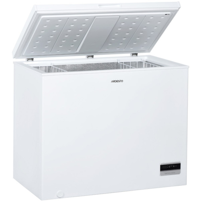 Цей морозильник дозволить зробити зберігання продуктів максимально тривалим, зручним та безпечним. Модель використовує електронний блок керування з екраном. Температура заморозки налаштовується в межах від –12 до –24 °C. Є функція надшвидкого заморожування, а при необхідності агрегат також можна переключити на режим охолодження. Морозильна скриня Ardesto FRM-290E є старшою моделлю у своїй серії.
