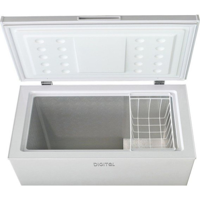 Компактна морозильна камера DIGITAL DCF-250 об'ємом 250 л у вигляді скриньки з одними дверима зі знімним кошиком для зберігання замороженої продукції (м'яса, риби, пельменів, олії, овочів, фруктів, ягід, грибів та ін.). Корпус раціональної конструкції з коліщатками. Клас енергоспоживання А+. Низький рівень шуму.