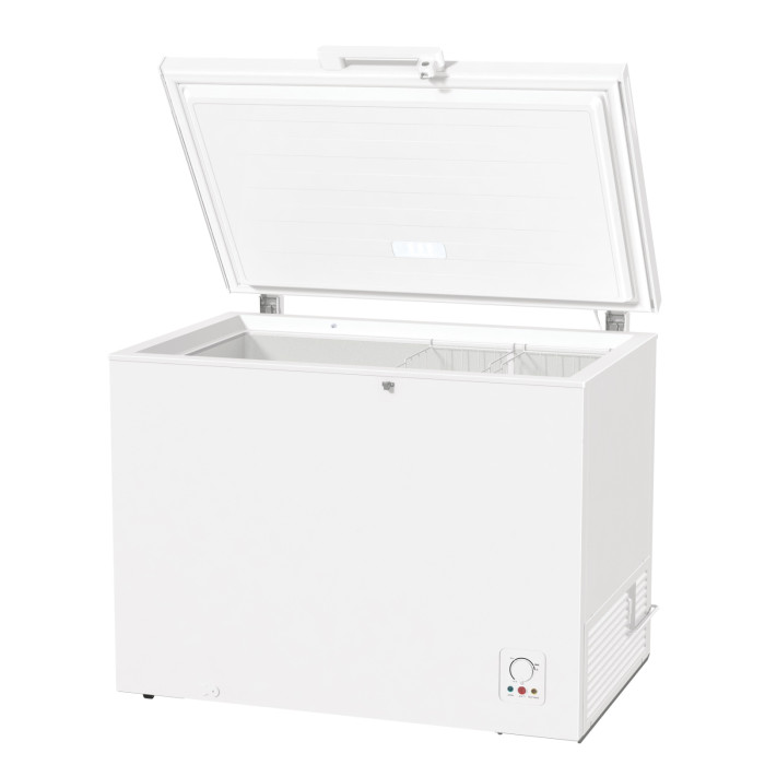 Морозильный ларь Gorenje FH301CW производится в отдельностоящем варианте в традиционном белом цвете. Модель оборудована надёжным поршневым компрессором и относится к классу энергопотребления А+. Агрегат объёмом 303 литра снабжён крышкой с удобной горизонтальной ручкой и плавным доводчиком закрывания. Между корпусом и изоляционной пеной в нём установлен конденсатор, предотвращающий образование капелек воды – конденсата. Прибор укомплектован двумя корзинами из металлических прутьев, которые помогут рационально разместить продукты для длительного хранения. Пища замораживается технологией быстрой заморозки FastFreeze при температуре -24 С, поэтому не повреждается кристаллами льда и сохраняет свои полезные свойства. Следует отметить, что модель способна работать при внешней температуре до -15 С, что позволяет размещать её, например, в неотапливаемых подвальных помещениях. Морозильный ларь Gorenje FH301CW управляется регулятором со световыми индикаторами, находящимся в нижней части фронтальной панели. Размораживается он ручным способом, а перемещается на прочных колёсах за боковые ручки.
