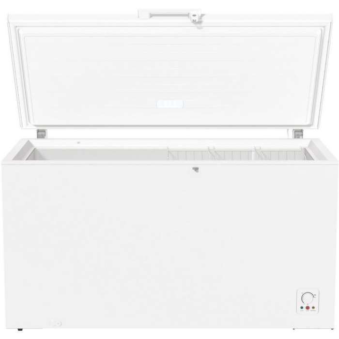 Морозильный ларь Gorenje FH451CW является отдельно стоящим агрегатом, изготовленным в белом цвете. Прибор установлен на колёсики, чтобы его было удобно перемещать в нужное место. Модель с электронный управлением относится к классу энергопотребления А+. Она оборудована поршневым компрессором, работающим с низким уровнем шума, не превышающим 39 дБ. Устройство полезным объёмом 457 литров закрывается верхней крышкой с дверным доводчиком и горизонтальной ручкой с замком. Для удобного размещения пищи на длительное хранение внутри имеются сетчатые металлические корзины. Функция быстрого замораживания FastFreeze сохраняет естественный цвет, вкус и полезные свойства продуктов. В случае отключения электроэнергии автономное сохранение холода гарантируется в течение 58 часов, а если температура повысилась до критического уровня, то загорается предупреждающий красный индикатор. Морозильный ларь Gorenje FH451CW защищён от замерзания системой FreezeProtect -15°C.
