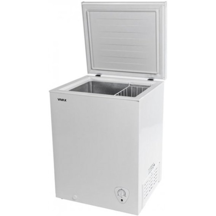 Морозильна скриня Vivax CFR-142 має об'єм 146 літрів, яких достатньо для зберігання основних продуктів узимку. Панель керування розташована на нижній передній правій стороні. Внутрішня частина розділена на дві частини та містить кошик для зберігання дрібних предметів, які можна легко знайти. Морозильна камера має клас енергоспоживання A+, що забезпечує дуже низький рівень споживання електроенергії. Приємний білий колір зовнішній вигляд.