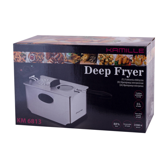 Фритюрниця Kamille - це пристрій, завдяки якому ви зможете швидко та смачно приготувати картоплю фрі, крильця, цибульні кільця, пончики. Цікавий дизайн та простота використання – його найбільші переваги! Можна з упевненістю сказати, що кожен з нас любить цей вид закусок і завдяки нашому продукту вся сім'я зможе насолодитися ними! Смажені закуски – слабкість багатьох гурманів. Немає нічого кращого, ніж хрумка картопля, картопля фрі з солодкої картоплі або гострі крильця, які зроблять зустрічі з друзями, вечірнє кіно чи матч улюбленої команди ще приємнішими. Люди, які люблять солодке, оцінять зручність смаження своїх улюблених пончиків чи млинців. Більше не потрібно використовувати різні каструлі, розмір яких ніколи не задовольняє нас повністю. Просте керування роботою.