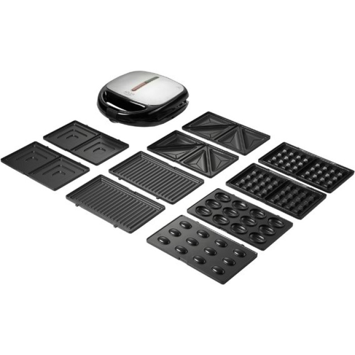 Мультикукер ADLER AD 3040 объединяет пять функций в одном устройстве! Благодаря высокой мощности 1200 Вт устройство позволяет не только жарить сэндвичи, но и готовить на гриле двухсторонние блюда, выпекать хрустящие вафли и печенье. Устройство оснащено 5 типами сменных пластин: для бутербродов из тостового хлеба (тарелка с треугольниками для более тонких бутербродов), для традиционных хлебных бутербродов (тарелка с квадратными углублениями для более толстых бутербродов), для гриля (тарелка с продольными канавками), для вафель ( клетчатая тарелка), для печенья (тарелка с углублениями для шариков теста).