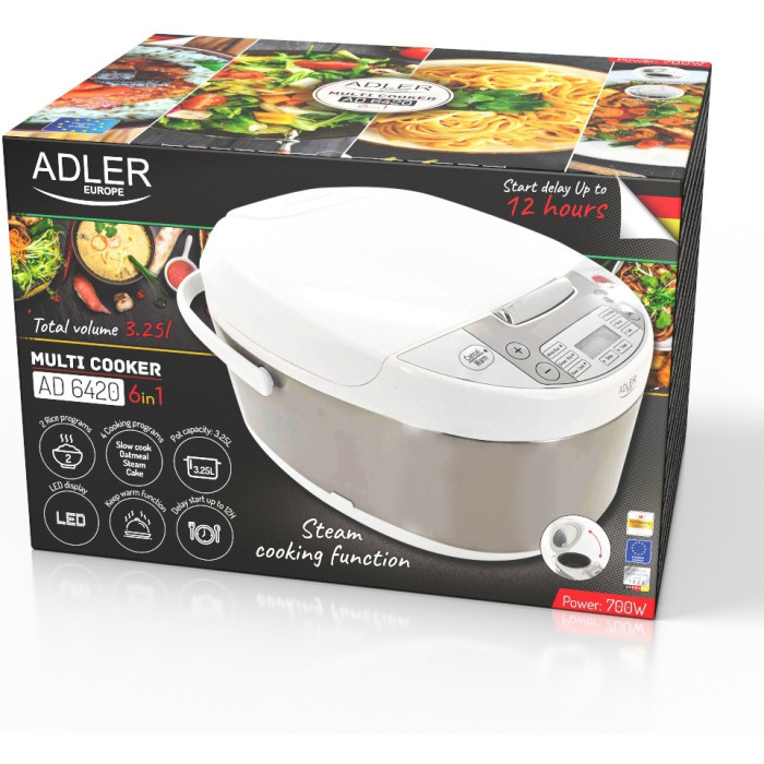 Мультиварка Adler AD 6420 – це багатофункціональний пристрій, що дозволяє швидко та легко готувати різноманітні страви. З її допомогою можна зварити рис, приготувати вівсянку, пиріг та страви на пару, завдяки чому ви заощадите час та місце на кухні.