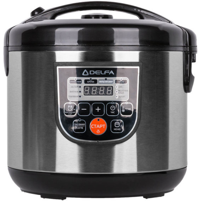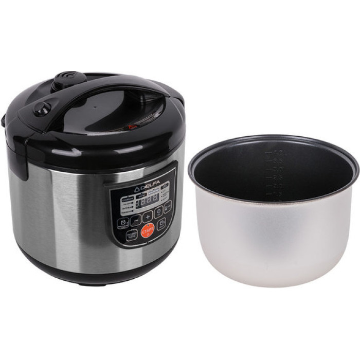 Мультиварка Delfa DMC-50H4, мощностью 860 Вт, значительно облегчит приготовление еды для семьи. Она, помимо привлекательного дизайна, отличается надежностью и функциональностью. Приготовить йогурт и домашнюю выпечку, кашу, жаркое, плов, наваристый борщ с ее помощью не составит труда. Помимо 10 основных программ, имеется функция «свой рецепт», где вы сами выбираете нужные параметры. Возможность разогрева или поддержания нужной температуры пригодится, если ваши домочадцы приходят домой в разное время. Таймер отсрочки до 24 часов позволяет заранее побеспокоится о полноценном свежем обеде. Мультиварка Delfa DMC-50H4 имеет чашу с качественным антипригарным покрытием, что позволит использовать ее более длительное время. Контейнер-пароварка незаменим при приготовлении более здоровой пищи. А интуитивное электронное управление поможет быстро справится с поставленной задачей.