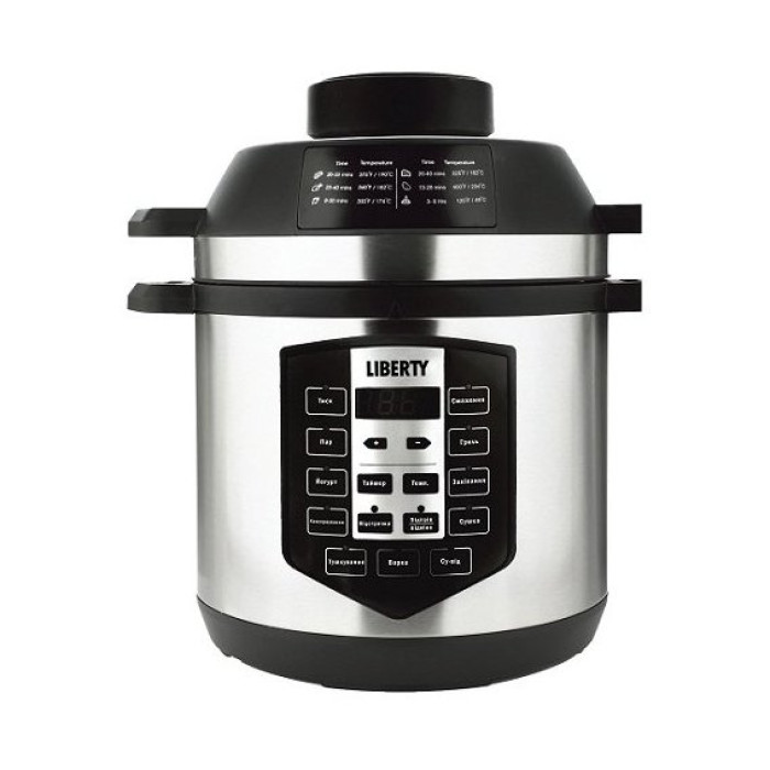 Liberty MC-1563 X - станет настоящим спасением для тех, кто ценит преимущества техники, сочетающей в себе несколько видов приборов. Она весьма функциональна, имеет классический дизайн. По сути, данное устройство – это скороварка, пароварка, сковорода, кастрюля, гриль, фритюрница и йогуртница в одном корпусе. Как и большая часть современных чаш для мультиварок, емкость данной модели имеет антипригарное покрытие. Управление посредством электронных кнопок и LED-дисплея простое и эргономичное, не вызывает никаких сложностей. На фронтальной панели расположены кнопки, на которых расписаны функции режимов.