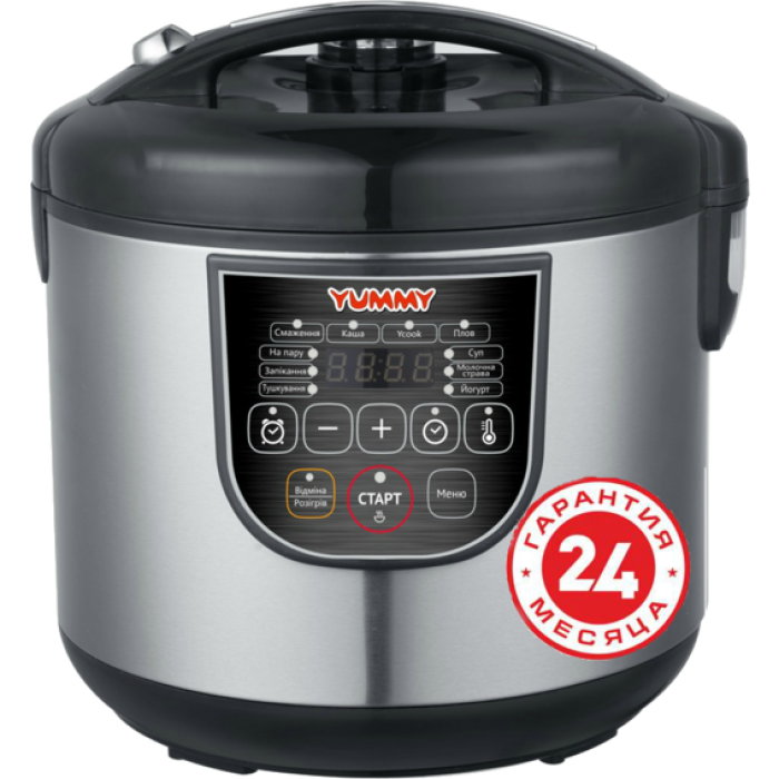 Мультиварка Yummy YMC-510B является простой и надежной моделью с хорошим набором функций и высоким качеством исполнения. Yummy YMC-510B изготовлена с использованием современных технологий, которые позволили при компактных размерах прибора обеспечить ему большую функциональность. Данная модель умеет готовить каши и плов, варить суп и поджаривать, тушить и готовить йогурт, а также варить на пару и запекать. Не подведет в ней антипригарное покрытие, облегчающее уход за 5 л чашей, а также 3D-нагрев и влагосборник. Помимо этого, в работе с ней можно использовать функции Ycook, поддержание температуры до 24 ч с предварительной отменой этой функции, таймер отсрочки и разогрев. К достоинствам Yummy YMC-510B можно отнести ее внешне привлекательный дизайн, простоту и удобство в эксплуатации.
