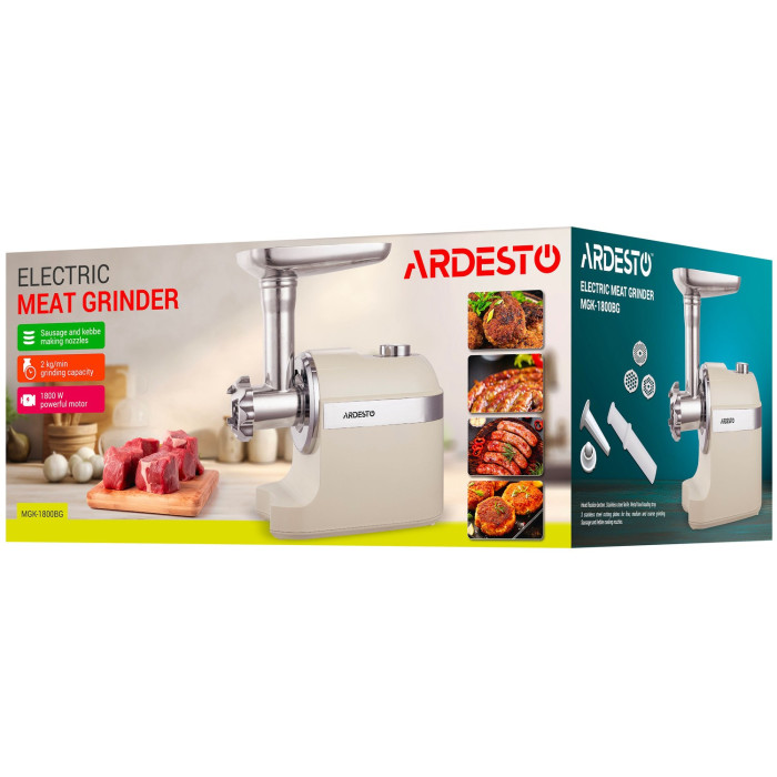 Мощная мясорубка ARDESTO MGK-1800BG представляет собой идеальное решение для быстрого и эффективного измельчения мяса и других продуктов. С ее помощью вы сможете быстро и легко приготовить фарш, котлеты, колбасы и другие мясные блюда.Модель оснащена мощным двигателем мощностью 1800 Вт, который обеспечивает высокую производительность и надежность работы. Корпус изготовлен из прочного и надежного материала, что гарантирует долгий срок службы устройства.Мясорубка ARDESTO MGK-1800BG оснащена несколькими насадками различного размера, что позволяет выбирать оптимальную степень измельчения продуктов в зависимости от ваших потребностей. Удобное управление и компактный размер делают эту модель идеальным выбором для домашнего использования.