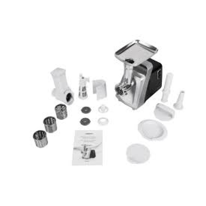 Три перфорованих диски (7 мм/5 мм/3 мм), чотири терки (велика, стандартна, шатківниця, для дерунів); для кеббе та сосисок; бургер-прес; для приготування томатного чи ягідного соку; штовхач
