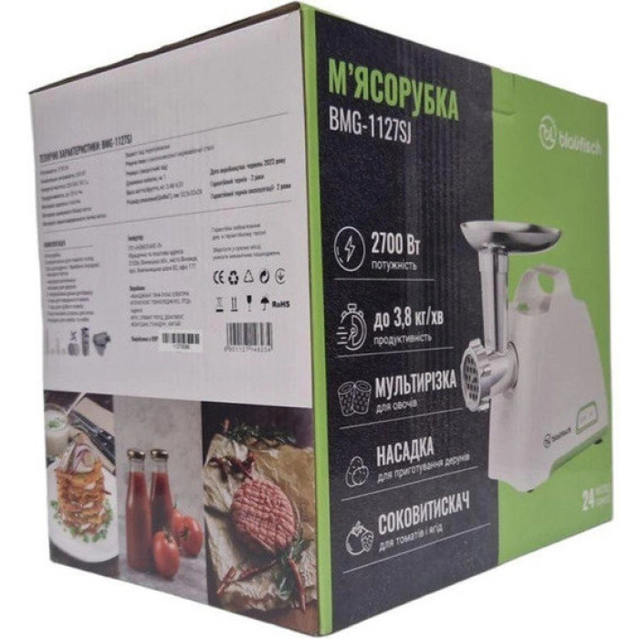 Мощная и надежная мясорубка BMG-1127SJ, быстро и качественно перемалывает мясо, создавая идеальную текстуру для любых блюд. Она оснащена многофункциональными насадками, которые позволяют быстро и легко измельчать и перемалывать любые продукты. Вы сможете готовить самые разнообразные блюда, в том числе котлеты, фарш, паштеты и колбасы, в домашних условиях, при этом получив идеальную текстуру и вкус.