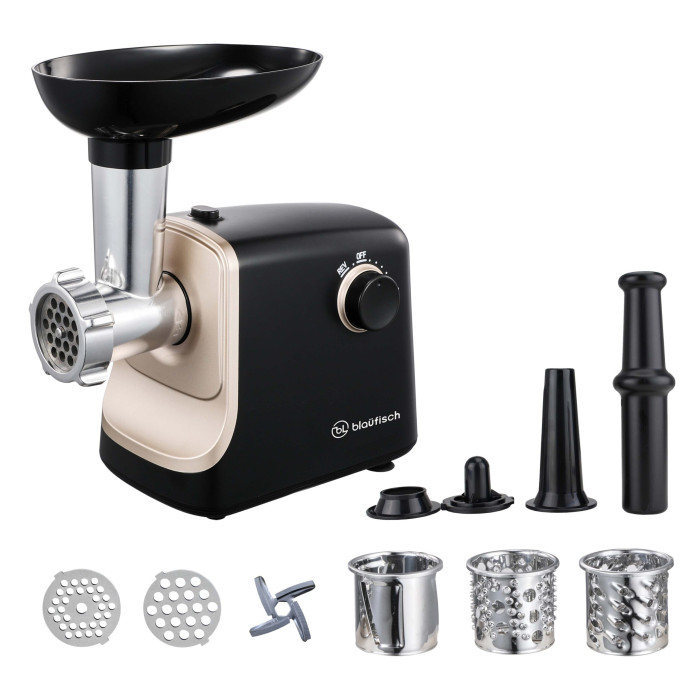 Мощная и надежная мясорубка Blaufisch, быстро и качественно перемалывает мясо, создавая идеальную текстуру для любых блюд. Она оснащена многофункциональными насадками, которые позволяют быстро и легко измельчать и перемалывать любые продукты. Вы сможете готовить самые разнообразные блюда, в том числе котлеты, фарш, паштеты и колбасы, в домашних условиях, при этом получив идеальную текстуру и вкус.