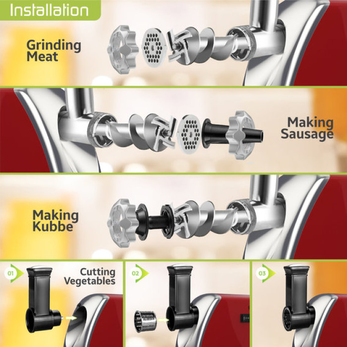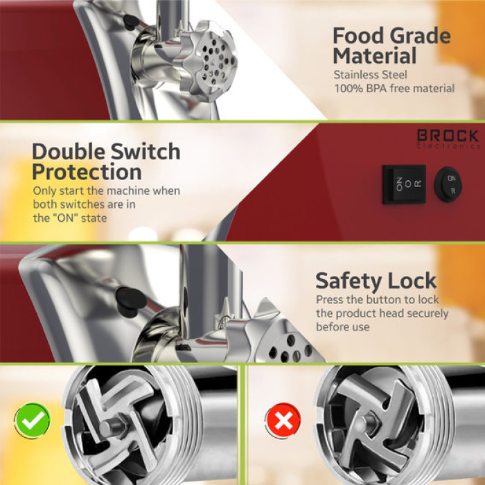 Производительная мясорубка BROCK MG 1601 RD просто незаменимый девайс для приготовления всеми любимых блюд, основным ингредиентом которых является мясной фарш. В комплектации к прибору прилагается 3 сеточные насадки с различным диаметром отверстий. Благодаря этим решеткам вы сами сможете выбрать необходимую консистенцию фарша. Крупная решетка для более фактурного мясного фарша, средняя и мелкая для нежной консистенции.