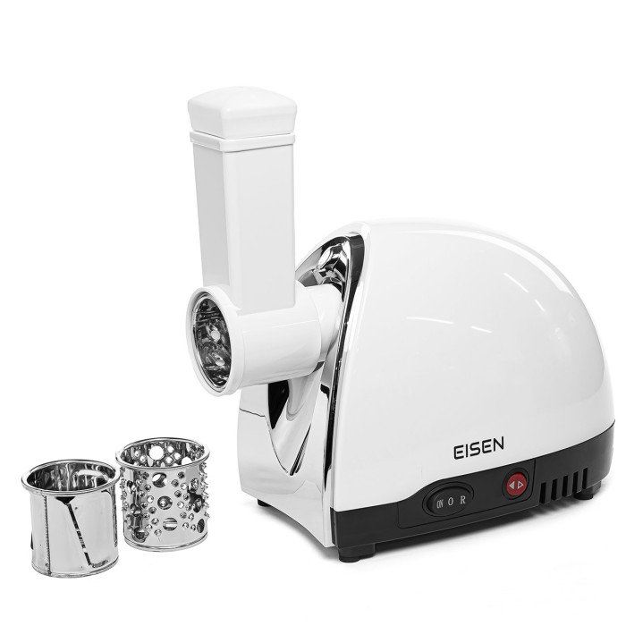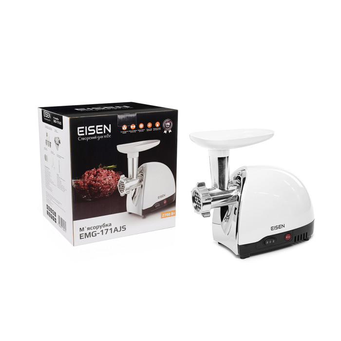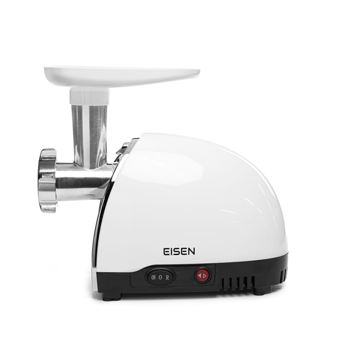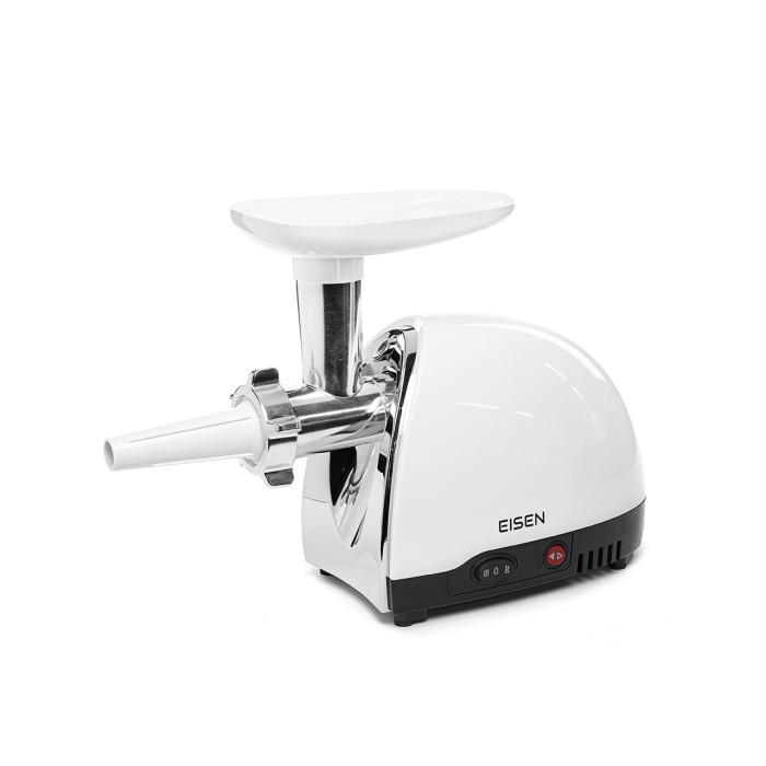 Використовуючи на своїй кухні м'ясорубку Eisen ви зможете приготувати фарш різної консистенції. Два диски для фаршу з перфорацією різного діаметру приготують фарш для ніжних тюфтельок або рубаних м'ясних котлет, регулюйте щільність і розмір шматочків за власним бажанням. Завдяки потужності 2700 Вт м'ясорубка впорається з продуктами будь-якої щільності, а якщо застряг шматочок або жили намоталися на шнек, на допомогу прийде функція реверсу.