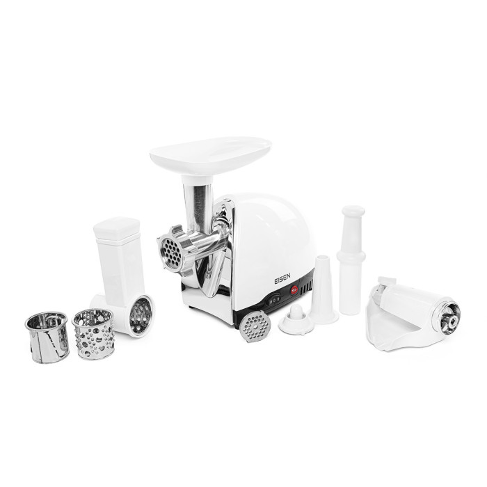 Назавжди забудьте про те, як колись користувалися механічною м'ясорубкою для обробки м'яса. Електром'ясорубка Eisen перетворить м'ясо або рибу на фарш зі швидкістю 4 кг за хвилину, і все, що вам знадобиться для цього - підготувати сировину та натиснути на кнопку. Надійна техніка за приємною ціною прикрасить вашу кухню та значно урізноманітнить раціон, адже готувати котлети, зрази та навіть домашні сосиски чи ковбаси ще ніколи не було так легко.