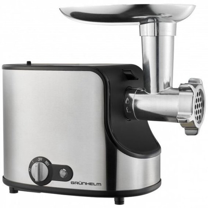 Функціональна та високопродуктивна електрична м'ясорубка GRUNHELM AMG240SSJ призначена для побутового використання. Завдяки високій піковій потужності, прилад чудово справляється з переробкою будь-якої кількості м'яса. Три диски для фаршу допоможуть приготувати дрібний або більший помел продукт.
