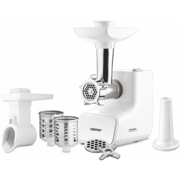 Мясорубка Zelmer ZMM3502B - это эффективная надежная модель от известного производителя. Высокое качество, универсальность, долговечность и комфортное использование — это бесспорные преимущества электромясорубки. Благодаря мощности 2400 Вт прибор может перерабатывать до 1,7 кг продукта в минуту. Больше не нужно тратить время и усилия, вручную натирая овощи и фрукты, перекручивая мясо. Воспользуйтесь электромясорубкой для быстрого идеального результата. В комплекте к данной модели идут 2 насадки-решетки из нержавеющей стали с разным диаметром отверстий. Делайте более фактурный фарш с крупной решеткой или более нежный с мелкой решеткой. Это позволит вам идеально приготовить блюда, нуждающиеся в разной степени консистенции фарша. Комплект из 2 насадок-барабанов легко справится с измельчением корнеплодов, зеленых и твердых фруктов, овощей. Вы больше не будете прикладывать много усилий, используя обычную терку. Достаточно загрузить продукт в мясорубку и через несколько секунд использовать заготовку для салата или супа.