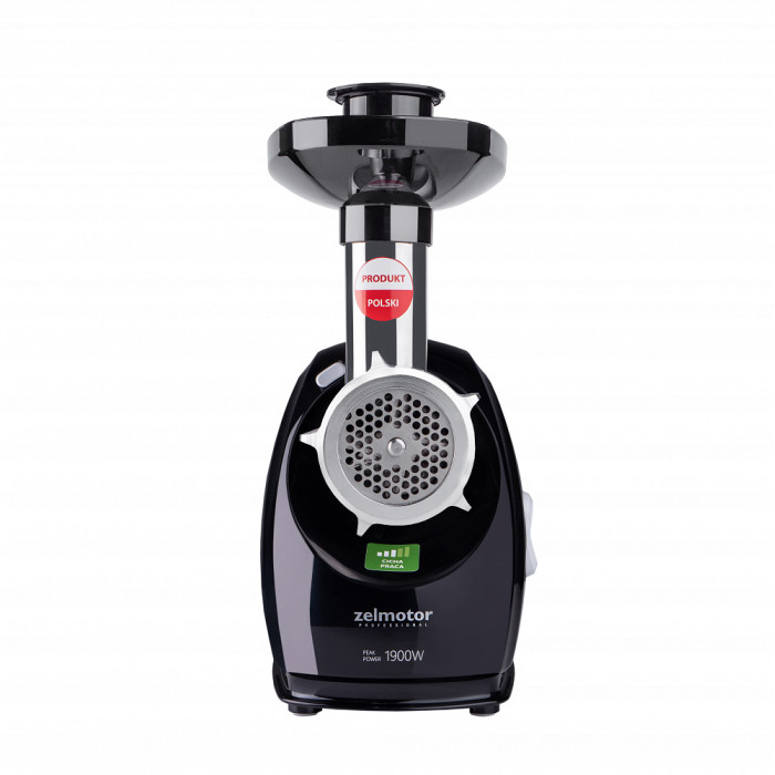 Міцна конструкція машини - металевий тубус і двосторонній ніж - гарантують довговічність і тривалий термін експлуатації. Дуже ефективна м'ясорубка ZELMOTOR 489.8 характеризується високою робочою потужністю - пікова потужність з потужність 1900 Вт, завдяки якій вона здатна подрібнювати до 2,5 кг / хв. Стабільність пристрою під час роботи забезпечується прогумованими нековзними ніжками. Він також має захист (зчеплення) для захисту двигуна від пошкоджень в разі блокування.