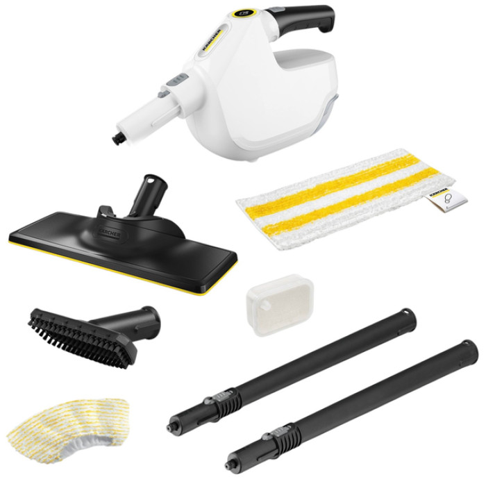Пароочиститель с потребляемой мощностью 1300 Вт. Имеет емкость бойлера 0,2л и резервуара для воды 0,2л. Оснащен насадкой для пола, мелковорсистой тканью, обтяжкой из микроволокна для ручной насадки, ручной насадкой. Имеет регулировку подачи пара и систему непрерывного долива. Время нагрева составляет 30 секунд, а длина шнура – 5 м. В комплект входят пароочиститель, насадки, салфетки из микрофибры, обтяжка для ручной насадки, антинакипины, удлинительные трубки (2 шт. по 0,5 м), инструкция и гарантийный талон.