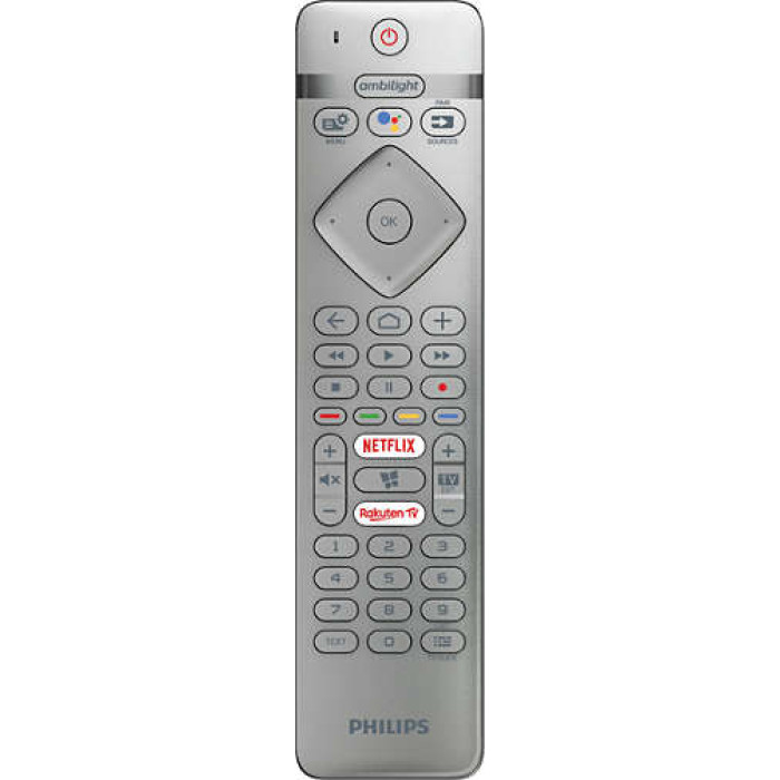 Диагональ::55" (140 см), Мощность звука::2x10Вт, Размеры без подставки (ШxВxГ)::1233,6 x 720,7 x 78,2 мм, Цвет::серебристый, Разрешение::3840×2160 (UHD), Тип::LED, Вес::18,9 кг, Доступ в интернет::есть, Поддержка Wi-Fi::есть, Телетекст::есть, Формат экрана::16:9, Светодиодная (LED) подсветка::есть, Таймер::есть, Разъемы::Wi-Fi 802.11n 2x2, Ethernet х1, HDMI х4, USB х2, оптический (Toslink) х1, выход на наушники х1, компонентный вход х1, USB::есть, Гарантия::12 мес, Размеры с подставкой (ШxВxГ)::1233,6 х 746,8 х 240 мм, Дополнительно: :система Ambilight 3-полосная, Picture Performance Index 1700, HDR 10+, Procesor P5 Perfect Picture, Цифровой тюнер::DVB-T/T2/T2-HD/C/S/S2, Операционная система::Android 9.0, Стандарт VESA::300х200, Индекс качества динамичных сцен::1700