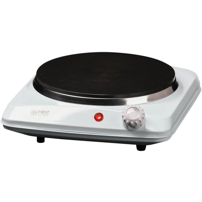 Плита електрична FIRST FA 5087. Електроплита First FA 5087 – настільна, одноконфоркова, електрична плита дискового типу. Перевагою настільних, одноконфорочних плит перед двоконфорковими завжди є їх компактність та мобільність. Після роботи, електроплиту можна почистити і заховати в навіть невелику кухонну шафу. До того ж, вони доступніші за двоконфорочні за ціною. Корпус електроплити First FA 5082-4 виготовлений з нержавіючої сталі, покритої білою емаллю, яка надає їй приємного вигляду. На нижній частині розміщені чотири ніжки з гумовими наконечниками, які надають моделі сталого положення під час роботи. Вони досить м'які і не подряпають поверхню стільниці при переміщенні плити. На передній частині корпусу розміщено світловий індикатор живлення та механічний поворотний регулятор термостату. За допомогою ручки регулятора Ви можете плавно керувати температурою варильної поверхні. Її максимальний показник – близько 500°С. Потужність електроплити First FA 5082-4 – 1500Вт. Вона дозволяє нагріти чавунний диск за лічені секунди. Після відключення плити з мережі варильна поверхня ще довго підтримує високу температуру, що дозволяє економити електроенергію.