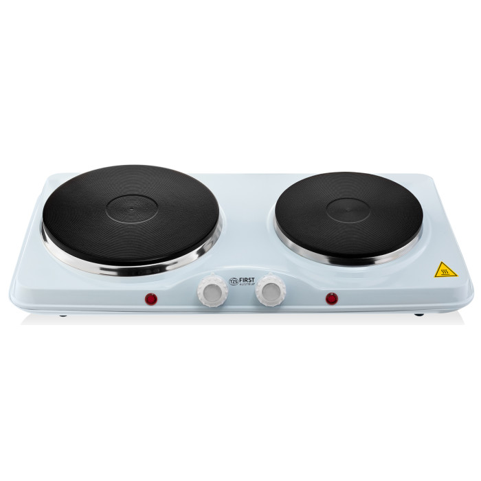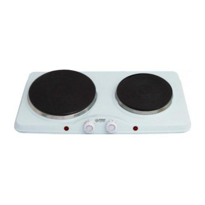 Настільна плита електрична FIRST FA-5083-4 з двома конфорками потужністю 2500 Вт та регульованим термостатом. Вона відмінно підходить для приготування різних страв, оскільки сумісна з посудом з металу, кераміки, емалі та інших матеріалів.