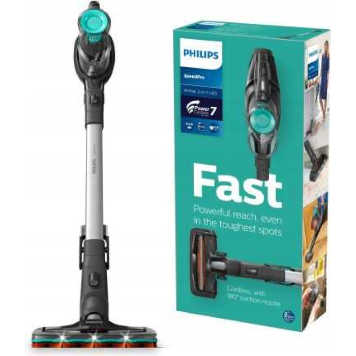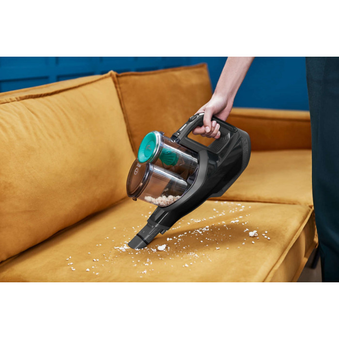 Съемный ручной блок превращает SpeedPro в два разных прибора, а чистящая насадка встроена в трубу, так что всегда будет под рукой для очистки потолков и полок.
