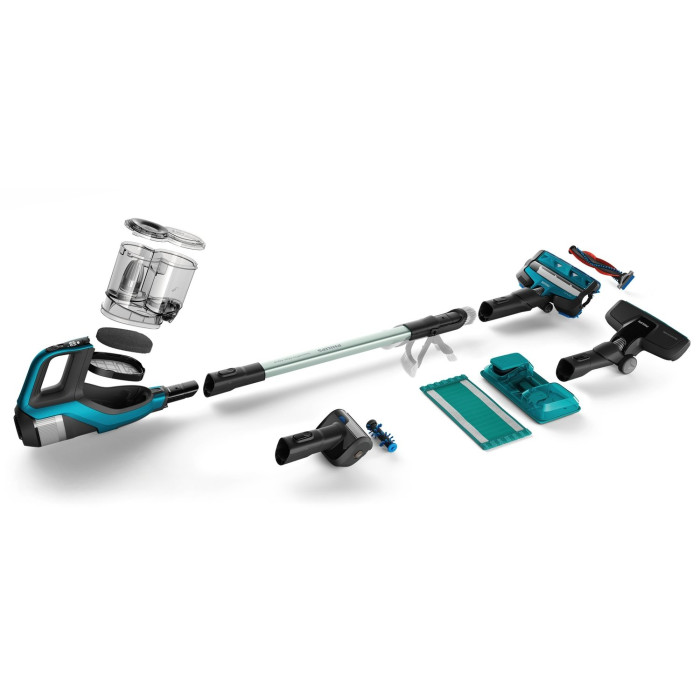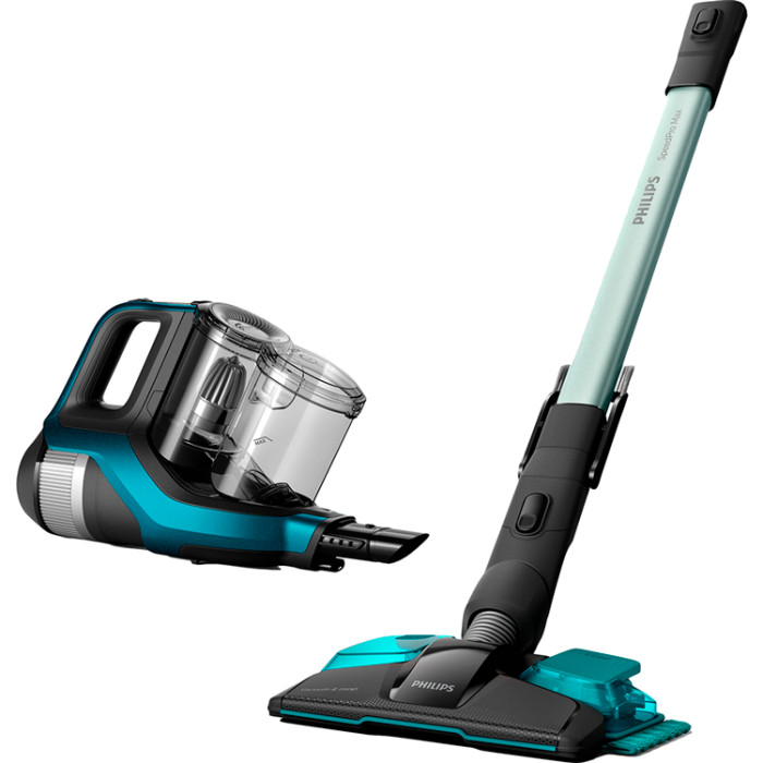 Power Blade цифровой двигатель был разработан для непревзойденного, сильного потока воздуха (> 1000 л/Мин), который обеспечивает 360°-мощность всасы Пылесос 2в1 (вертикальный+ручной) Philips FC6904/01 предназначен для сухой и влажной уборки помещений, а также для сбора жидкости. Его отличительной особенностью является использование мощной насадки с функцией всасывания 3600 . Она позволяет захватывать мусор со всех сторон на любых поверхностях, что не только повышает качество уборки, но и значительно ускоряет её. В модели установлен высокопроизводительный литий-ионный аккумулятор напряжением 25,2 В. После полной зарядки в течение 5 часов, он обеспечивает возможность 75-минутной непрерывной работы в режиме Есо (в нормальном режиме – 35 минут, в турборежиме – 25 минут). Применение цифрового двигателя PowerBlade позволяет добиться мощности всасывания превышающей 1000 литров в минуту. Для регулировки мощности в пылесосе 2в1 Philips FC6904/01 на ручке предусмотрен удобный переключатель. вания на насадке.