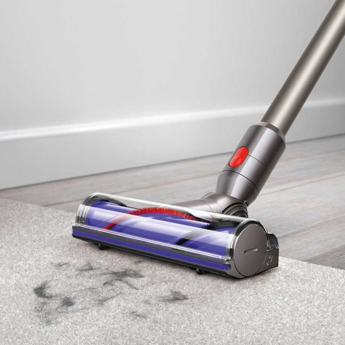 Вертикальный пылесос Dyson V8 Motorhead предназначен для сухой уборки всех типов напольных покрытий. Это беспроводное устройство питается от никель-кобальтового алюминиевого аккумулятора. Время автономной непрерывной работы зависит от применяемых насадок. С немоторизованными насадками аппарат функционирует 40 минут, с моторизованными – 30 минут, с насадкой с прямым приводом 35 Вт – 25 минут и в турбо режиме – 7 минут. Установленный двигатель с цифровым управлением обеспечивает максимальную мощность всасывания 115 аВт, регулируемую на ручке прибора.