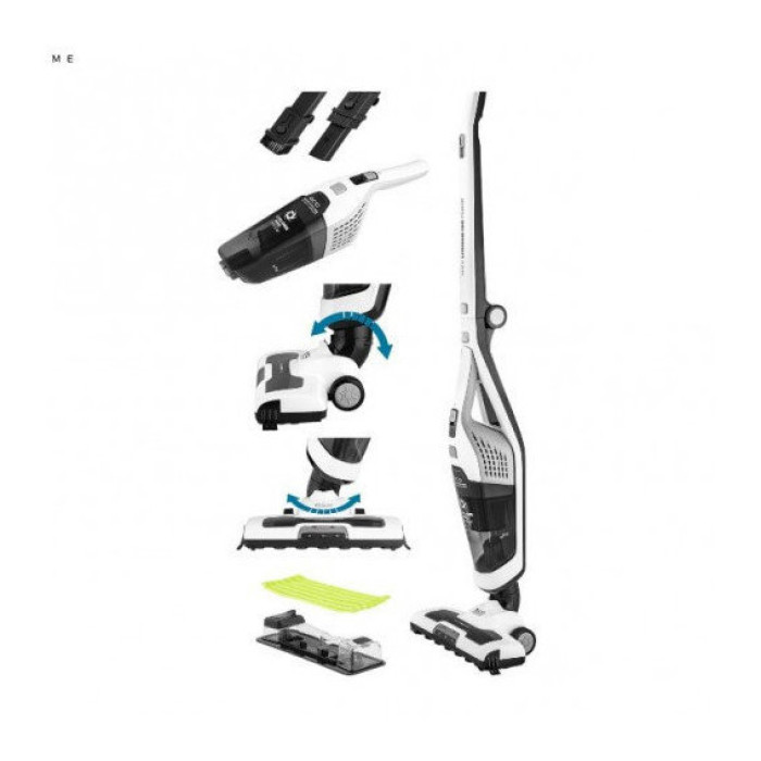 ECG VT 4420 3in1 Simon - вертикальний пилосос 3 в 1 (з ручним пилососом та функцією швабри) для спрощення прибирання. Призначається для всіх типів підлог, знімний комплект швабри з вбудованою ємністю для води (об'єм 0,2 л), знімна текстильна насадка швабри, ефективна циклонна система фільтрації, фільтр, що миється з нетканого матеріалу, пінний механічний фільтр.