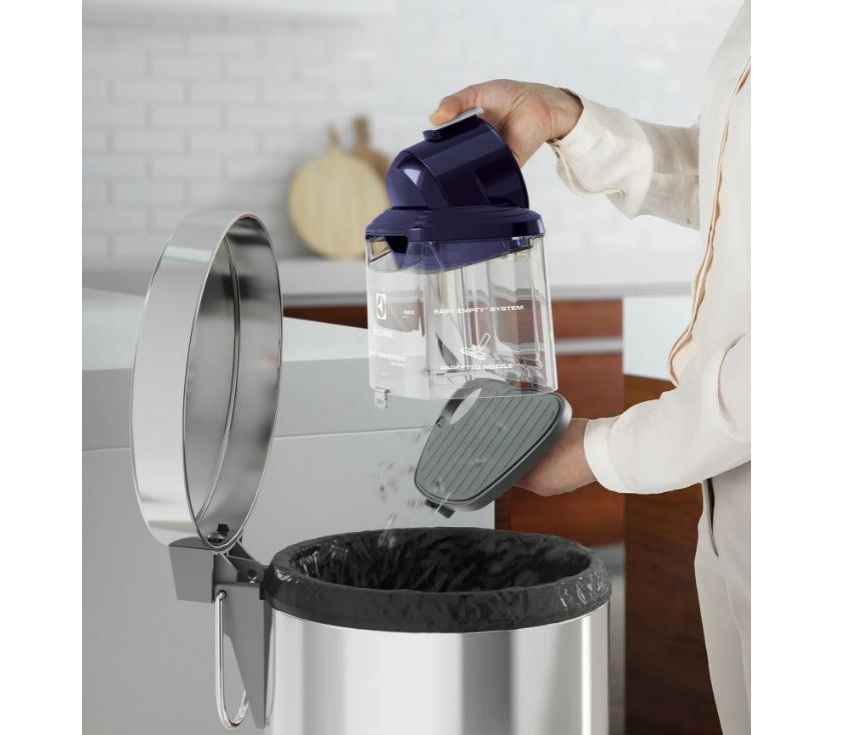 Чтобы очистить пылесборник, достаточно нажать на кнопочку снизу. Контейнер очищается в течение нескольких секунд. Гарантируется гигиеническая чистка без клубов пыли, которые способны спровоцировать кашель, чихание и аллергическую реакцию.
