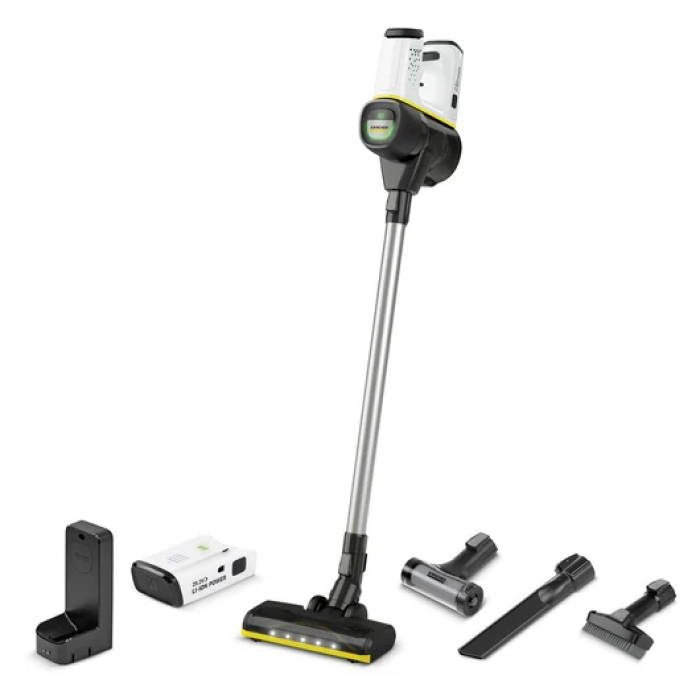 Комфорт в сочетании с полной свободой движений: аккумуляторный пылесос VC 6 Cordless Premium ourFamily превращает уборку в очень простое и даже приятное занятие. К числу многочисленных интеллектуальных решений, примененных в этом эргономичном аппарате, относятся механизм для быстрого опустошения мусоросборника, функция Boost и активная насадка для пола со светодиодной подсветкой для эффективной уборки в недостаточно освещенных местах. Другими преимуществами являются низкий уровень шума, наглядный индикатор состояния аккумулятора, выдающий также сообщения о неисправностях, и наличие отдельного инструмента для очистки фильтра. Кроме того, в пылесосе предусмотрена удобная функция Caps Lock, исключающая необходимость постоянно нажимать на кнопку выключателя. Настенный держатель с функцией заряда позволяет удобно хранить аппарат и заряжать его аккумулятор. Мощный (250 Вт) бесщеточный двигатель постоянного тока, питаемый от аккумулятора напряжением 25,2 В, гарантирует эффективную уборку. Продолжительность работы от одного заряда составляет 50 минут, а второй аккумулятор вдвое увеличивает ее. Специальный инструмент для очистки фильтра позволяет легко очищать его: для этого достаточно лишь установить инструмент, вставить второй входной воздушный фильтр, и начать очистку.