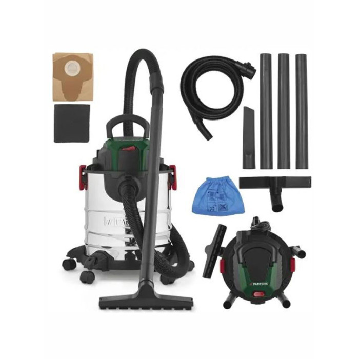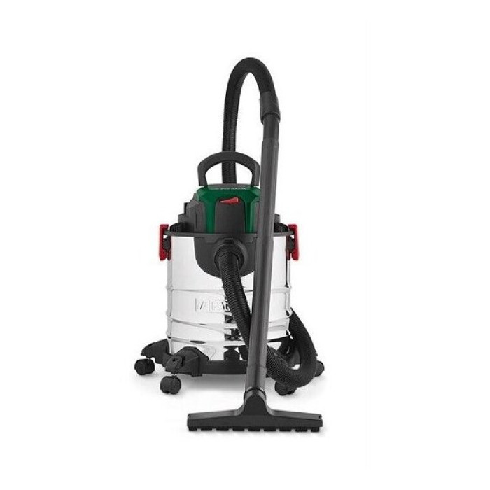 Строительный пылесос для сухой и влажной уборки PWD 20 B2. Многофункциональное чистящее устройство - легко удаляет влажную и сухую грязь, может также использоваться в качестве воздуходувки или для отсоса воды. Незаменимый помощник в мастерской, гараже, при ремонте или уборке в машине. Мощный аппарат с функцией влажной уборки. Легко опорожняемый контейнер из нержавеющей стали с защелкивающимися замками, складная ручка для переноски, встроенные держатели для труб, кабеля и насадок. Стабильность и простота маневрирования благодаря 5 опорам на колесиках.