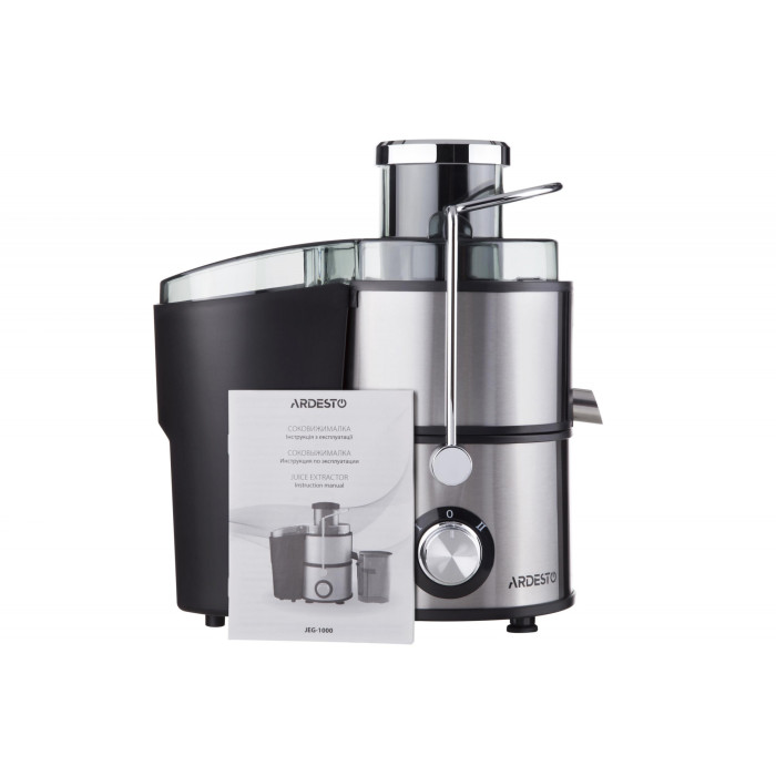 Ardesto JEG-1000 однаково легко подолає як фрукти, так і твердіші овочі. Користуватися соковижималкою дуже зручно – діаметр трубки 65 мм, це дозволяє завантажувати ціле яблуко відразу. Ручка перемикача має 2 швидкості керування. Безпека здійснюється за рахунок захисту від перегріву на потужному двигуні та запобіжному пристрої. Трубка з випуску соку має протикраплинну систему та виготовлена з нержавіючої сталі. Знімні деталі соковитискача прості в очищенні.