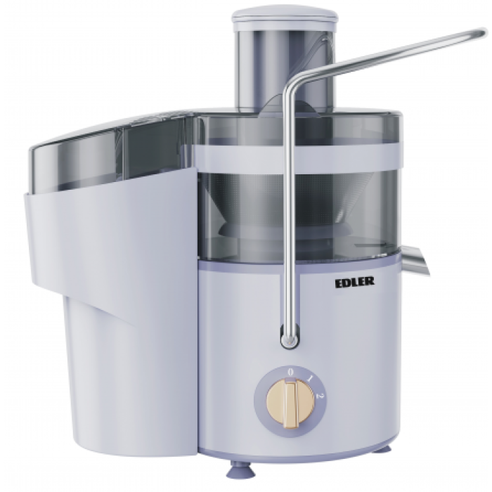 Соковыжималка, мощность 400 Вт, 2 скорости, объем резервуара для мякоти - 1 л, фильтр, лезвия из нерж. стали, диаметр горловины 75 мм, прорезиненные ножки, корпус пластик/ металл.