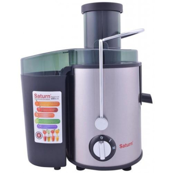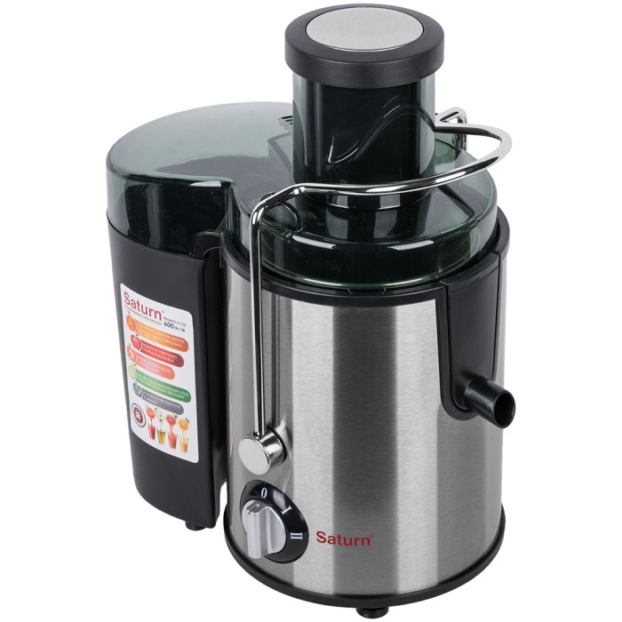 Saturn ST-FP8088 допоможе швидко приготувати сік або морс з будь-яких фруктів і овочів, балуючи Вас смачними і корисними напоями з вітамінами. Корпус моделі виготовлений з якісного харчового пластику і нержавіючої сталі. Завдяки стильному дизайну пристрій буде гармонійно виглядати на будь-якій кухні. Потужності 600 Вт, а також 2 швидкостей досить для швидкого і якісного приготування соку 0.5 л. Сітка з нержавіючої сталі забезпечує ефективне подрібнення м'якоті фруктів і овочів, а також передбачений автоматичний викид м'якоті.