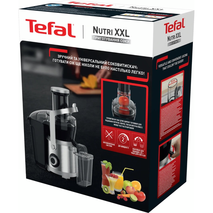 Соковитискач TEFAL ZE660D10 - це ідеальний пристрій для приготування свіжих та поживних соків з фруктів та овочів. Завдяки потужності 800 Вт і двом швидкостям, цей соковитискач може легко впоратися з будь-якими інгредієнтами. Унікальна технологія відокремлення шкірки та насіння дозволяє отримувати сок без будь-яких домішок. Широке вхідне отвір зручної форми дозволяє обробляти великі куски фруктів та овочів без необхідності передроблення. Крім того, цей соковитискач має розсувну ємність на 1 літр, яка легко видаляється для зручного і швидкого очищення. Його компактний дизайн забезпечує зберігання в місцях з обмеженим простором. Одержування соків з TEFAL ZE660D10 - це швидкий та простий процес, який дозволить вам насолоджуватися свіжими напоями кожен день.